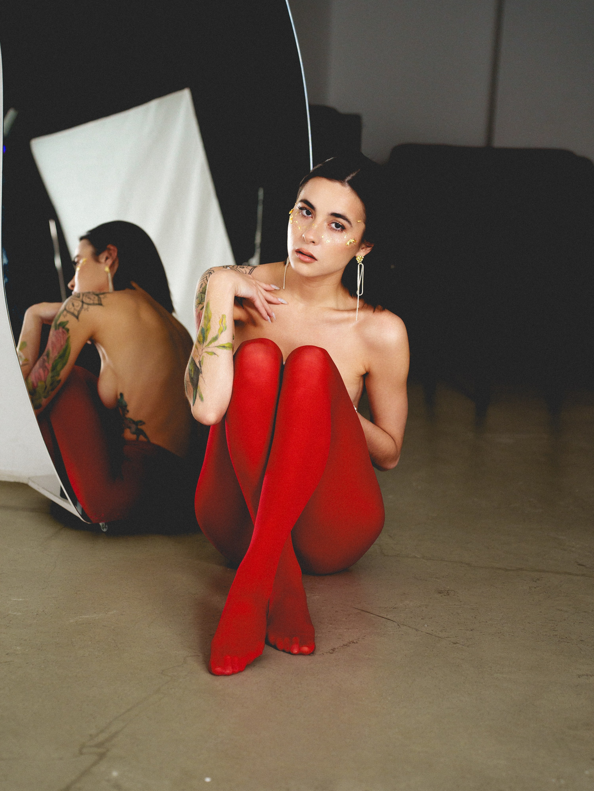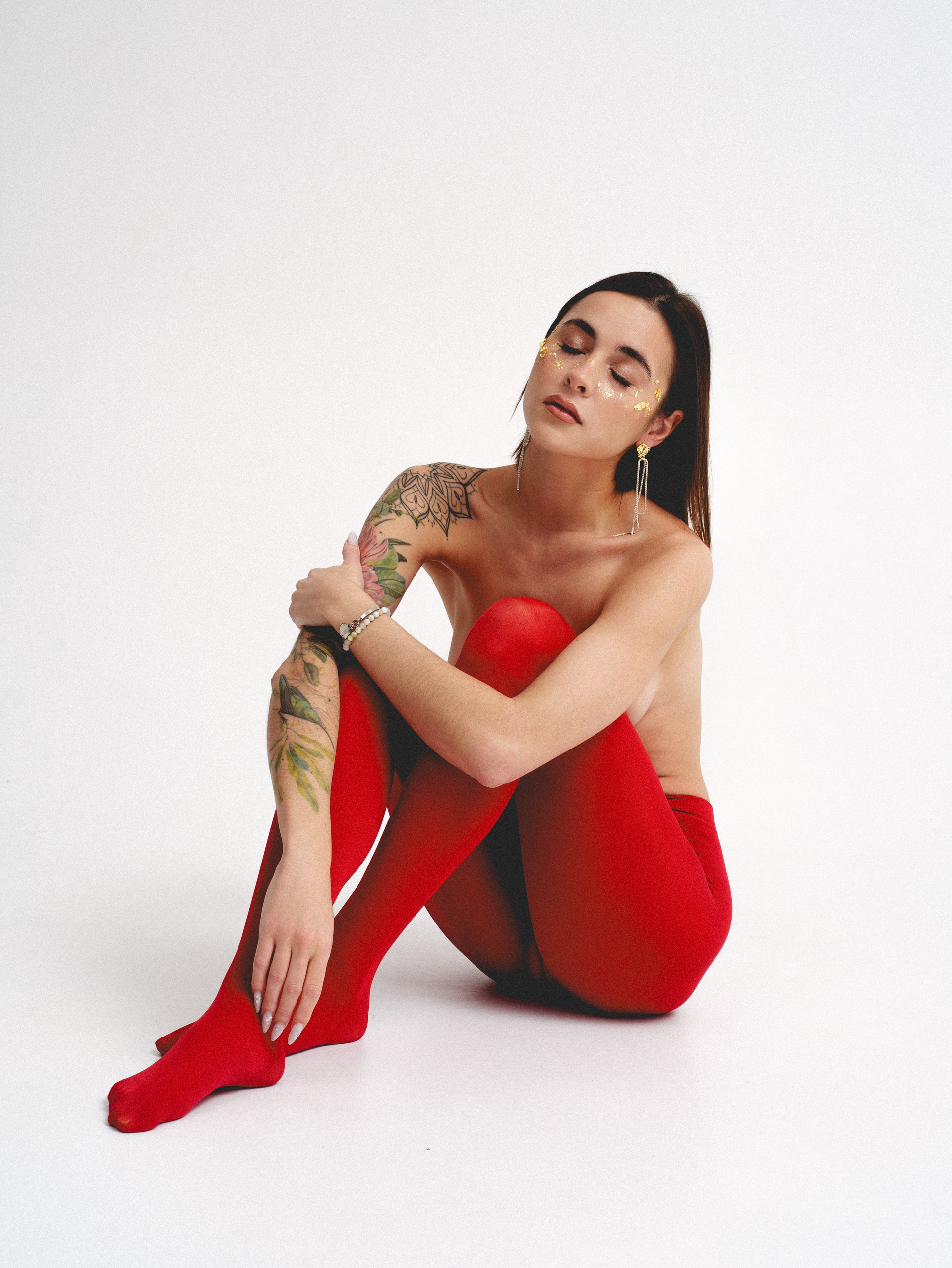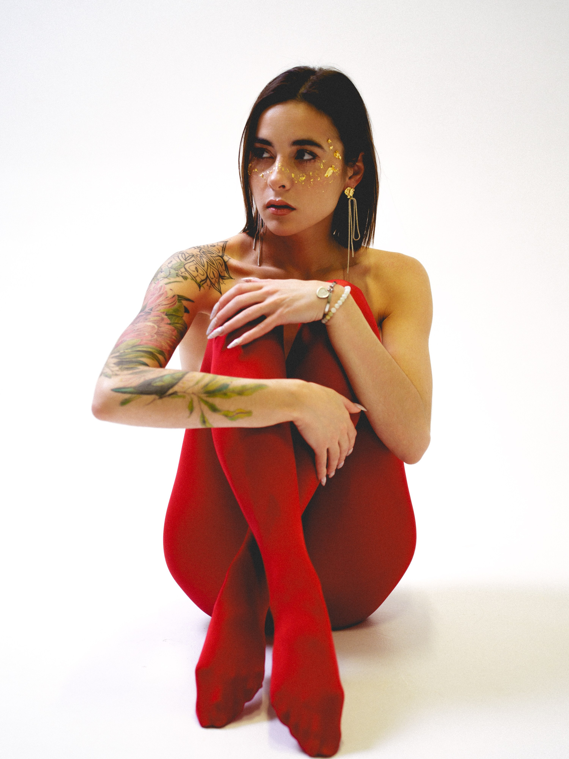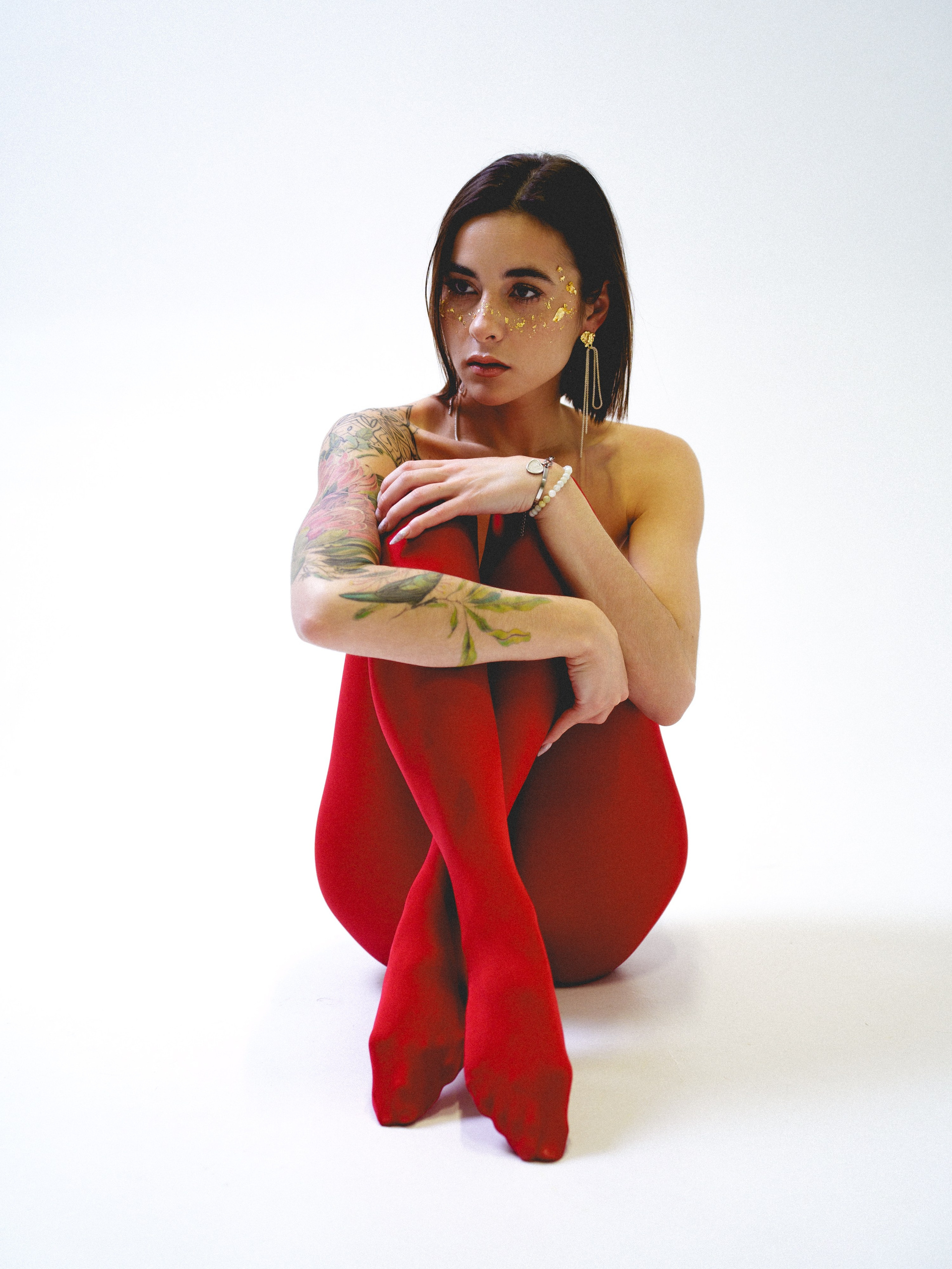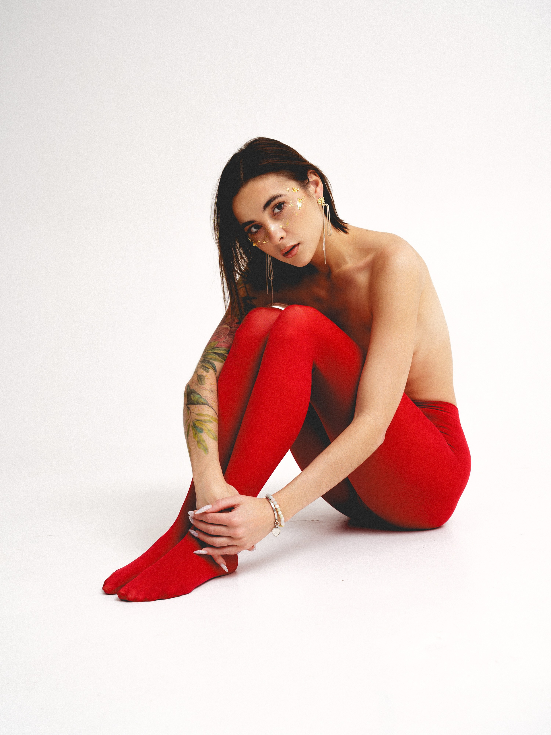 в красных колготках