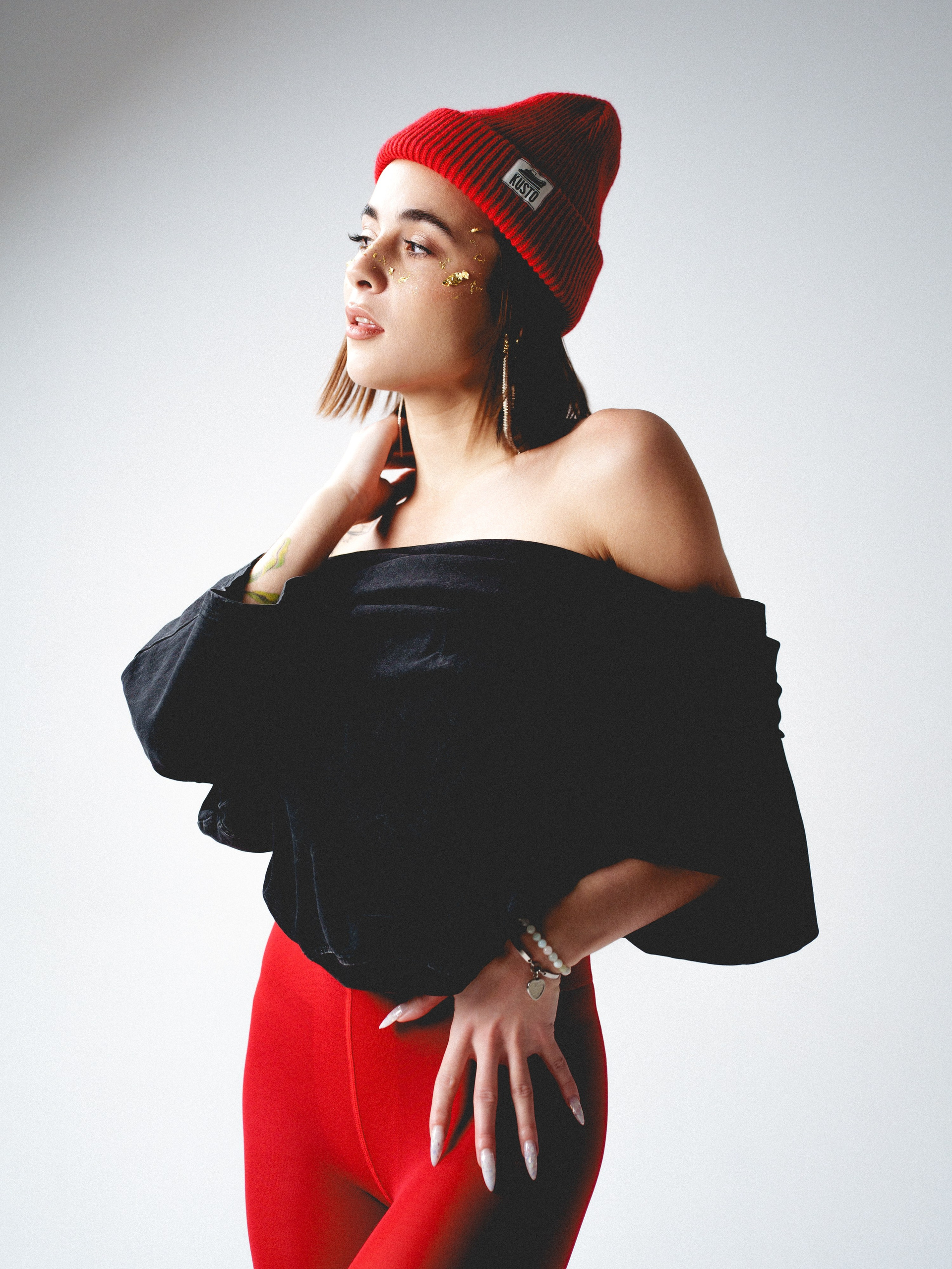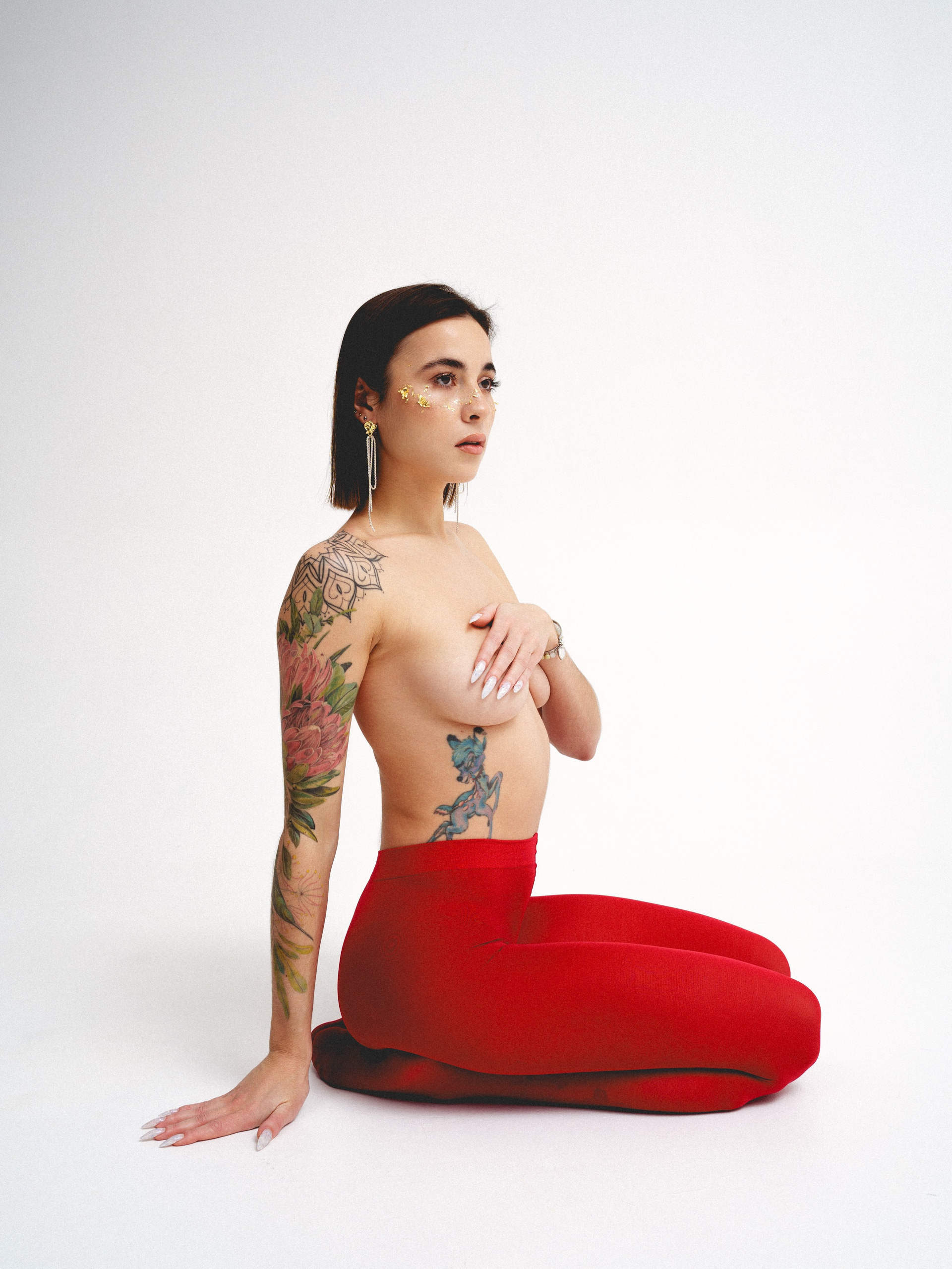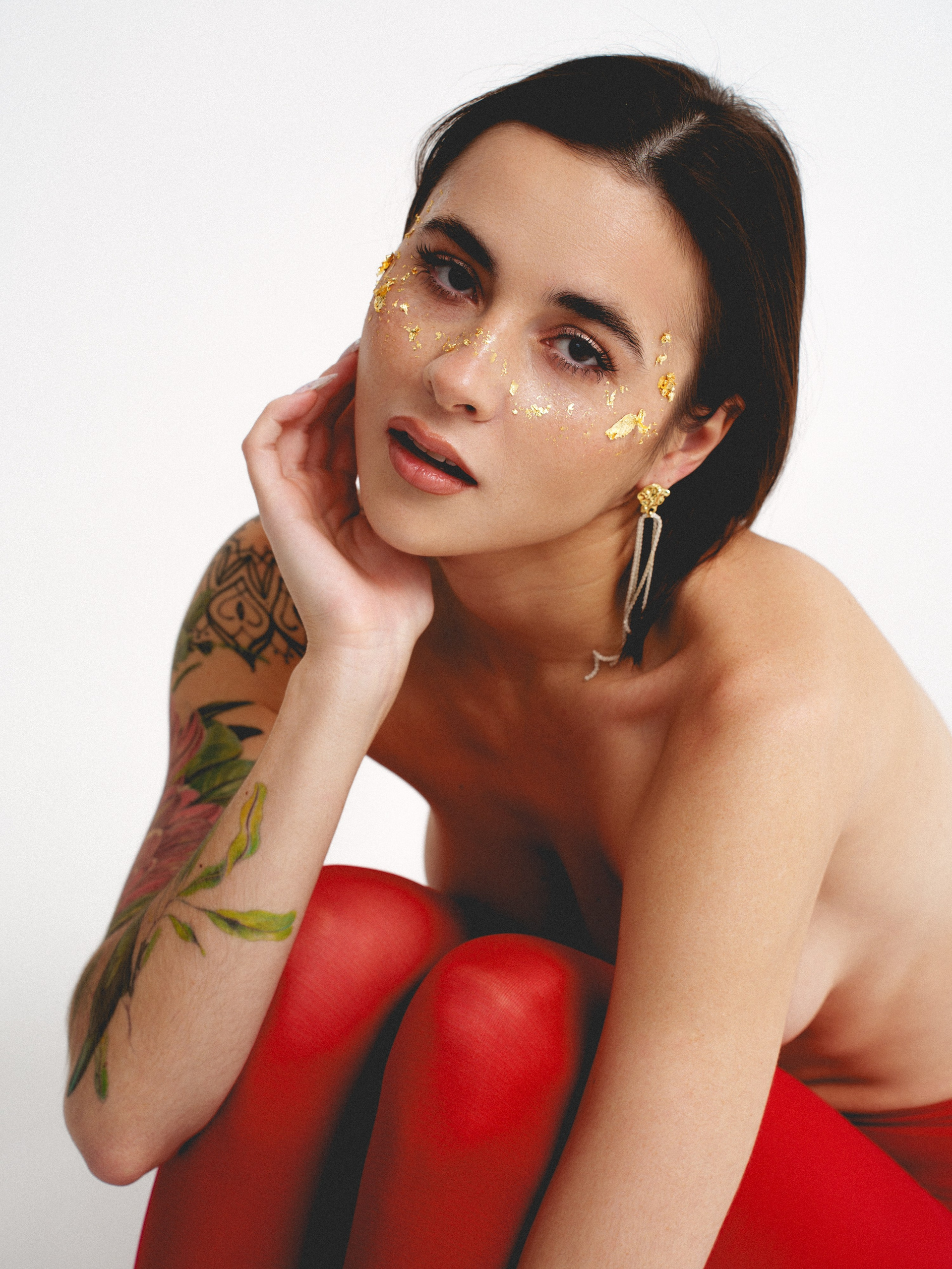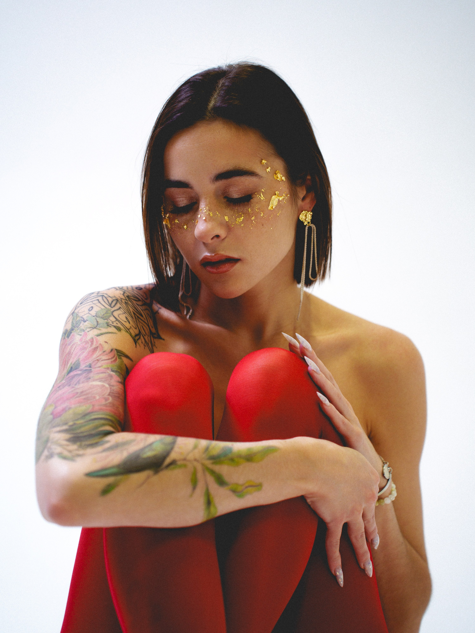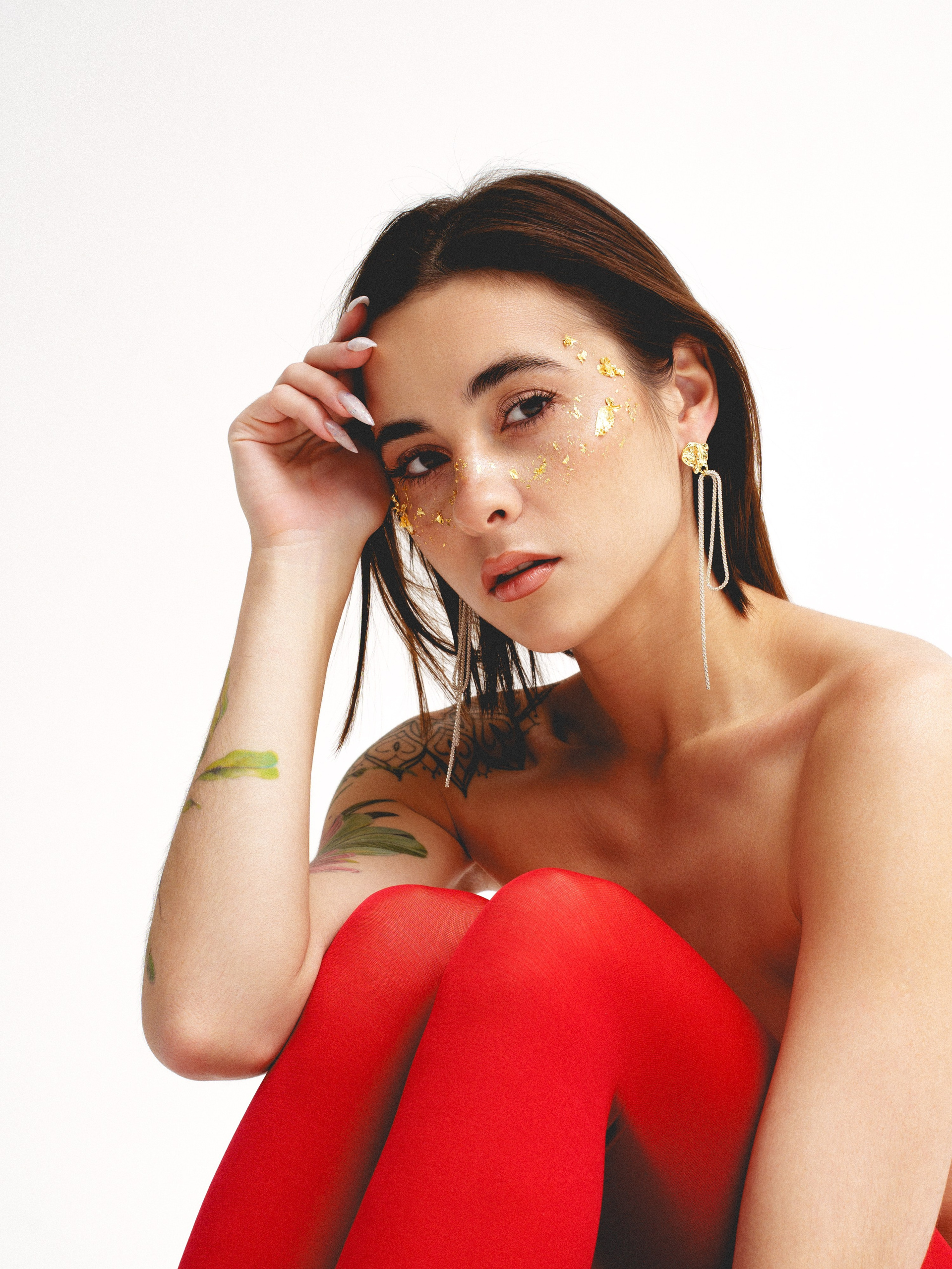 в красных колготках